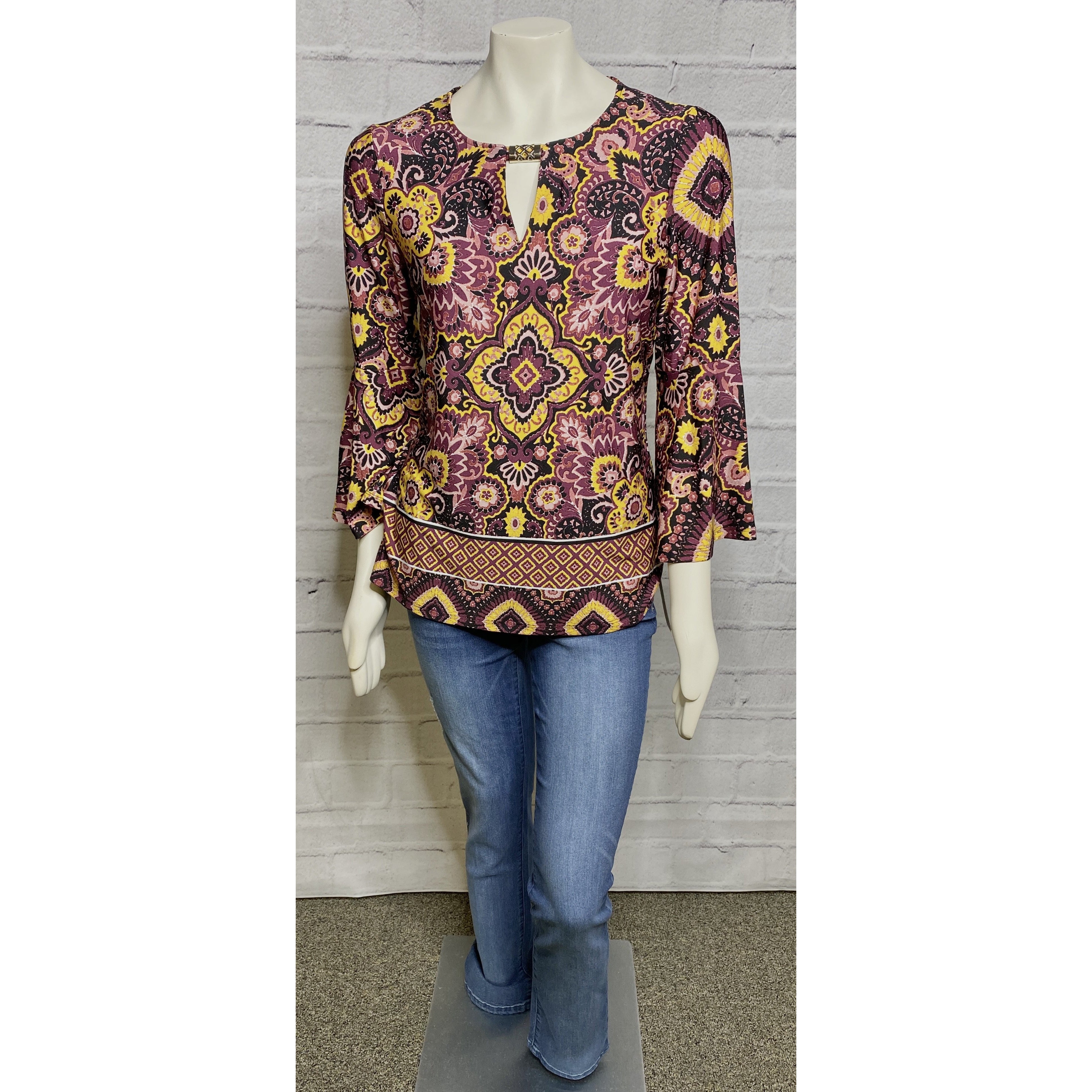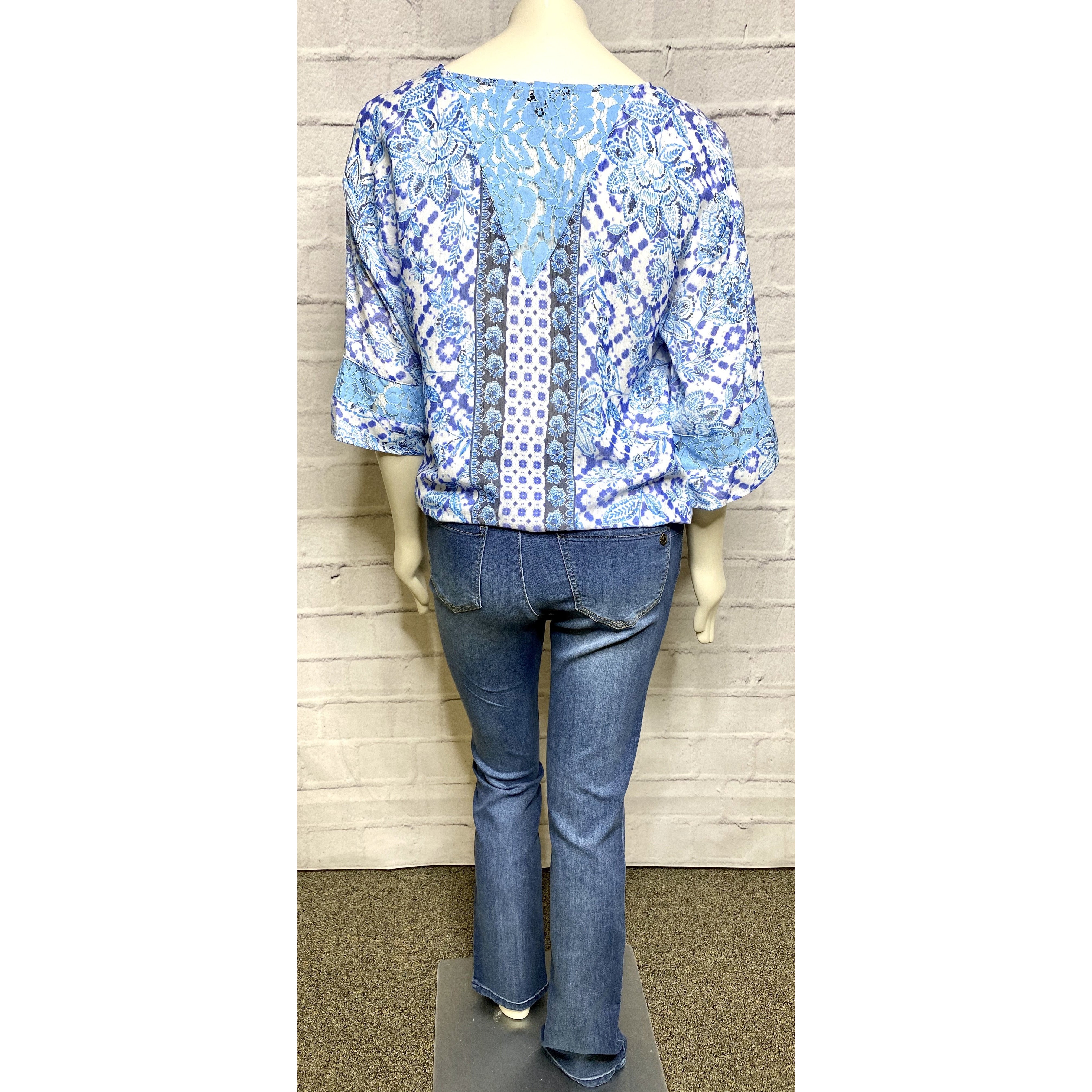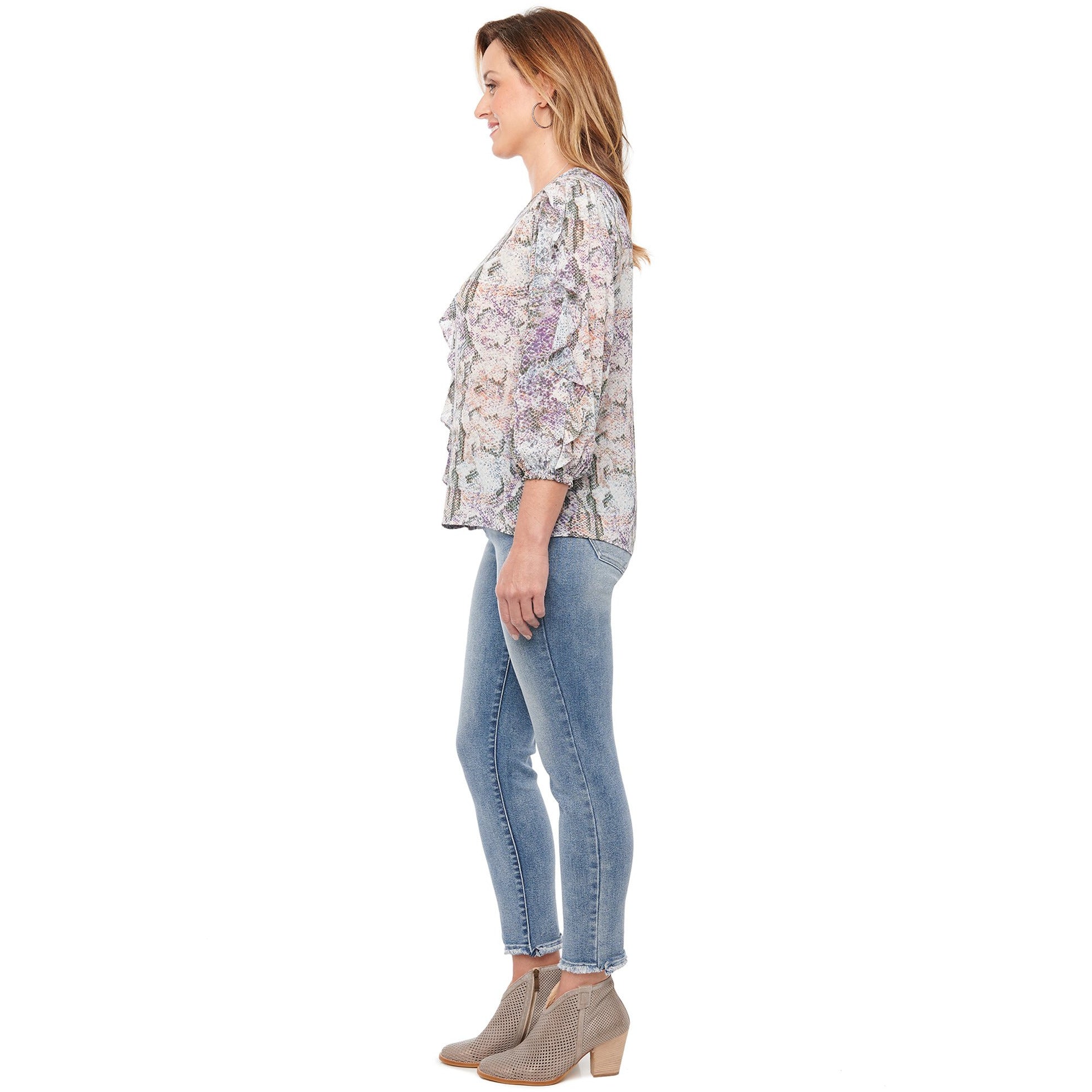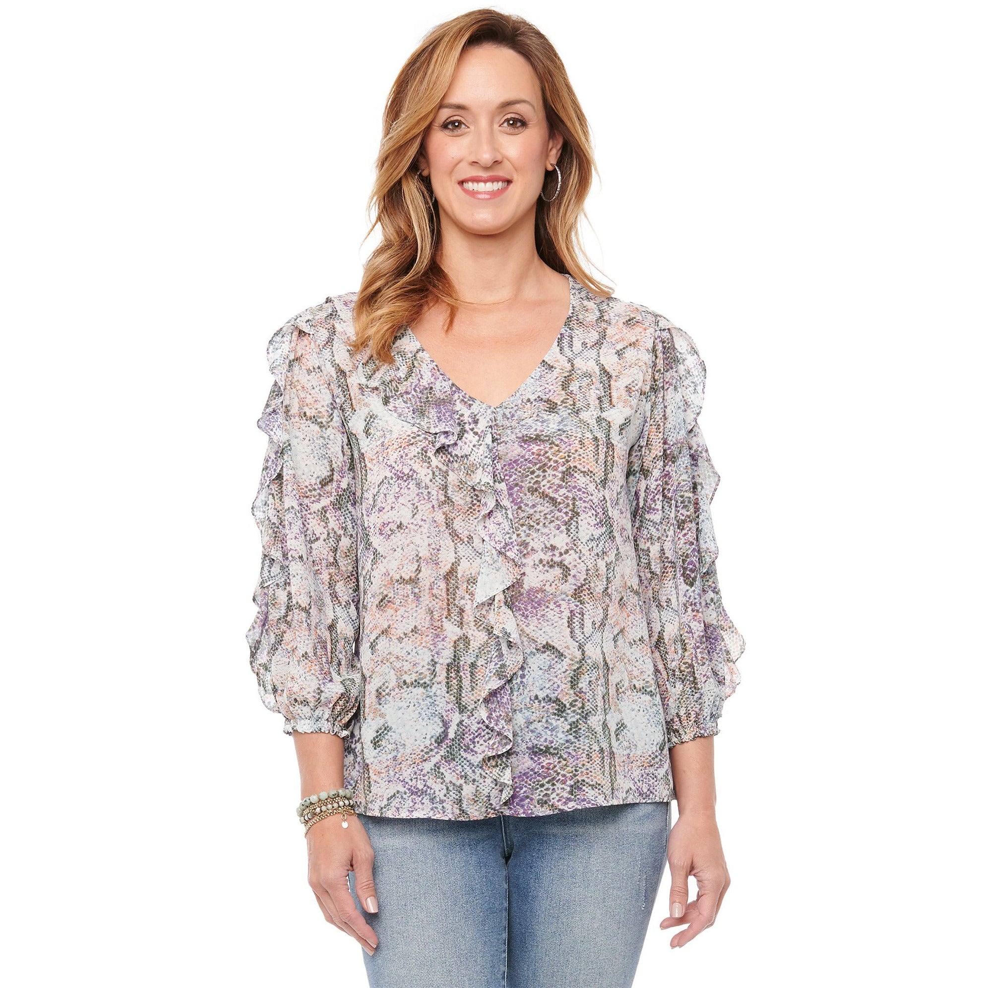 3/4 Sleeve Ruffle Front Snake Print Blouse