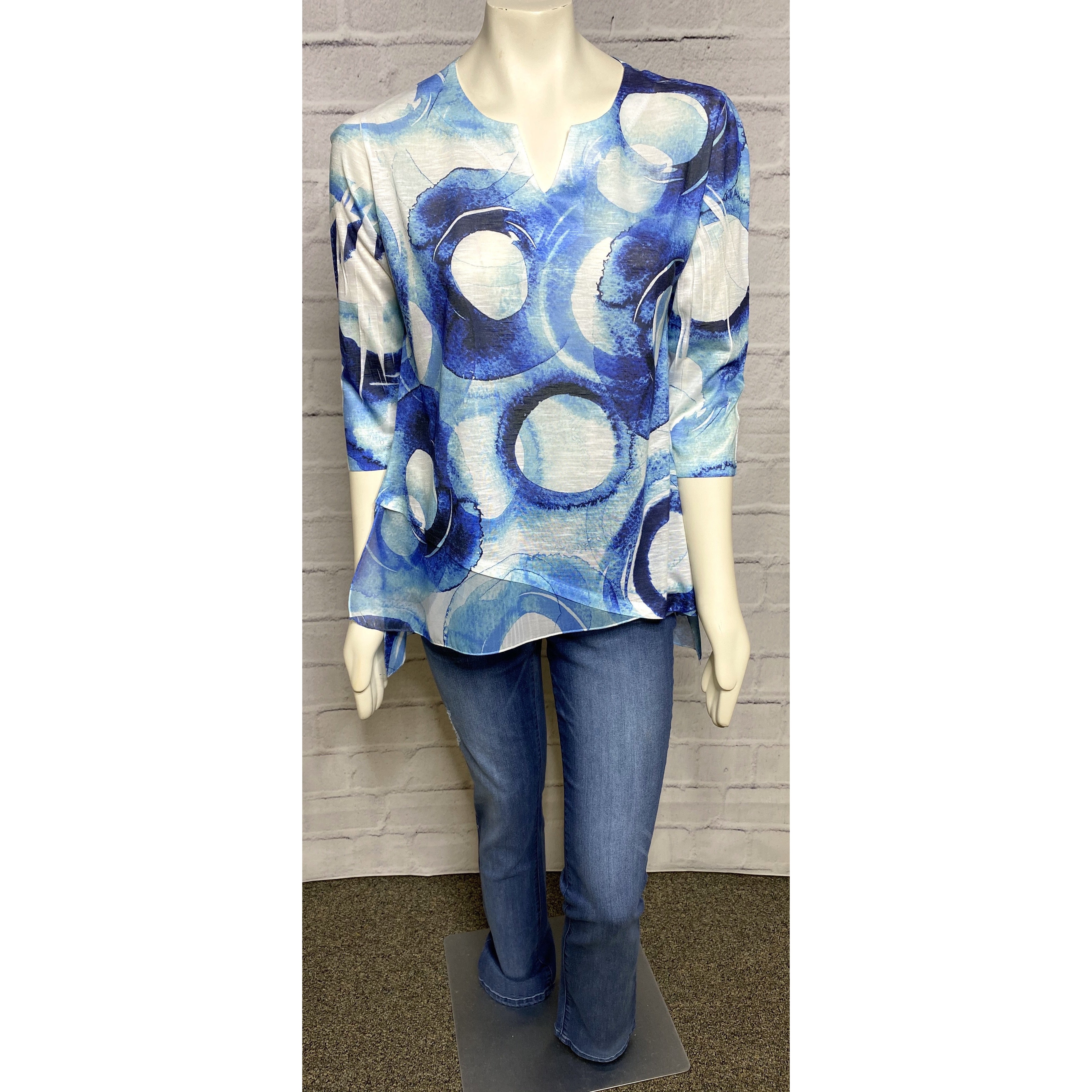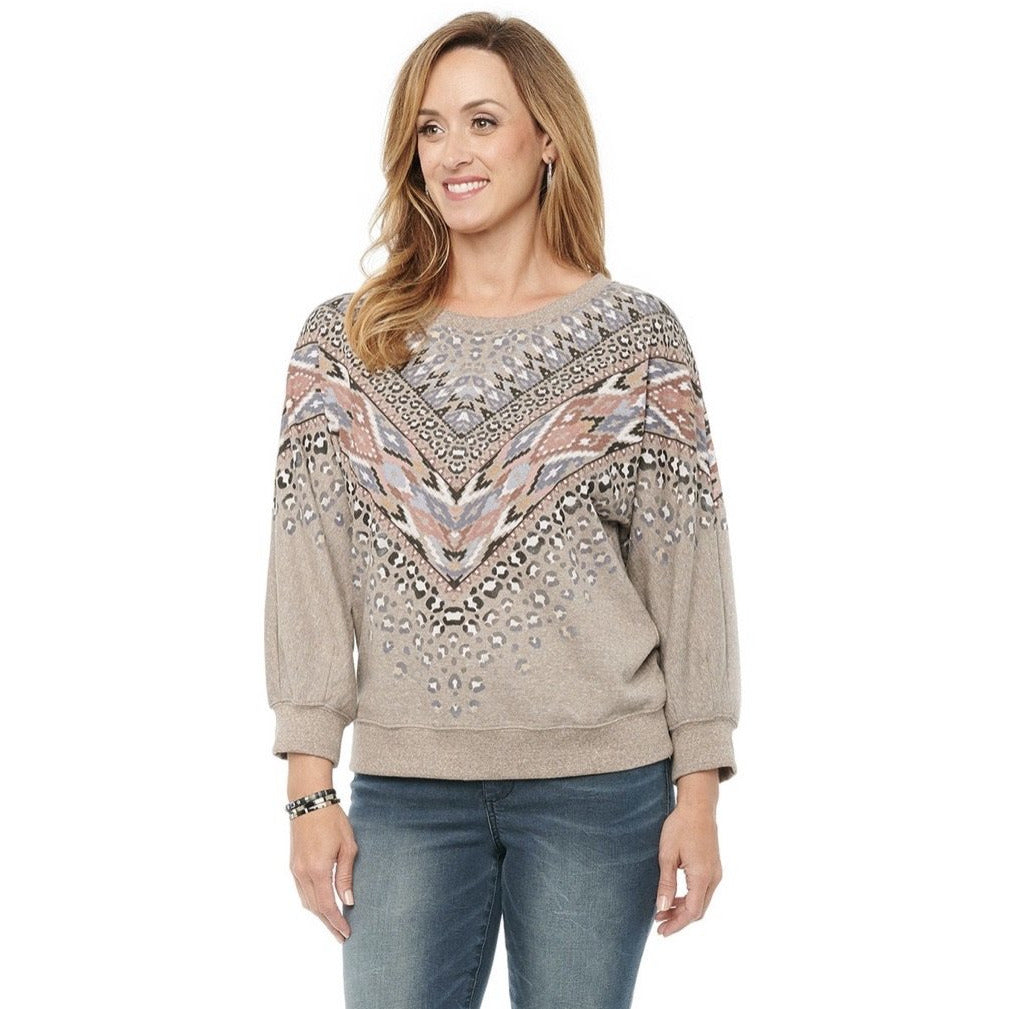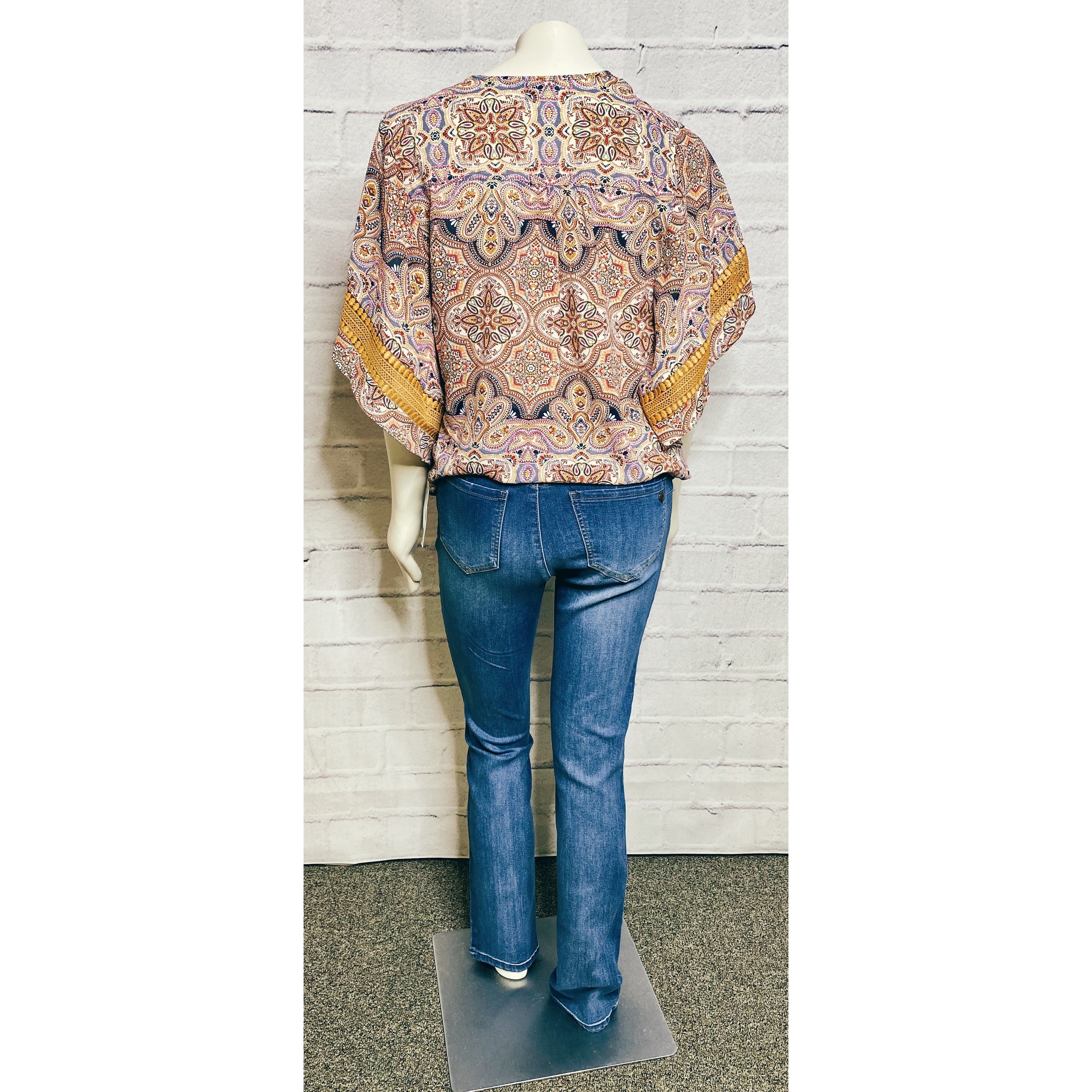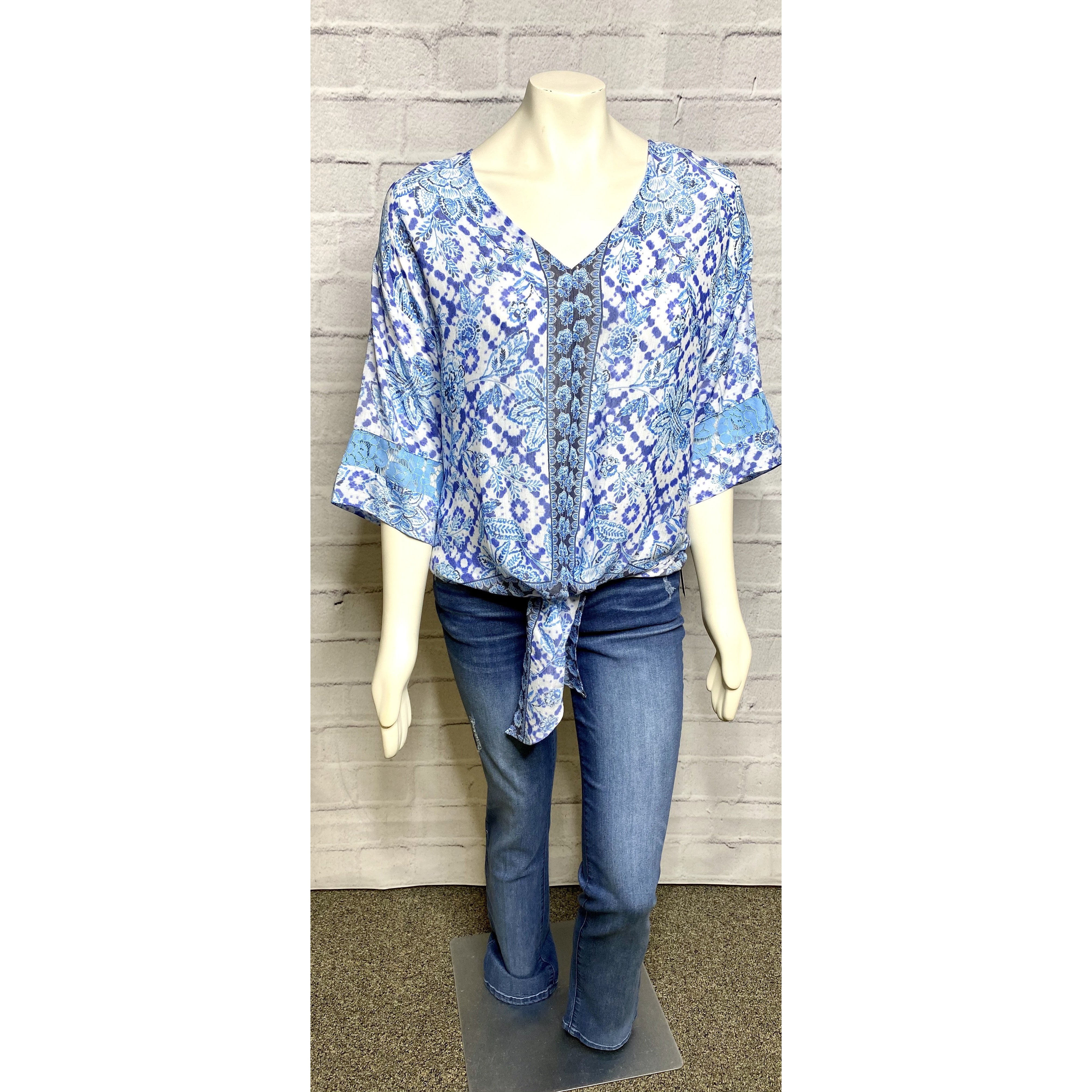 3/4 Sleeve Ruffle Front Snake Print Blouse