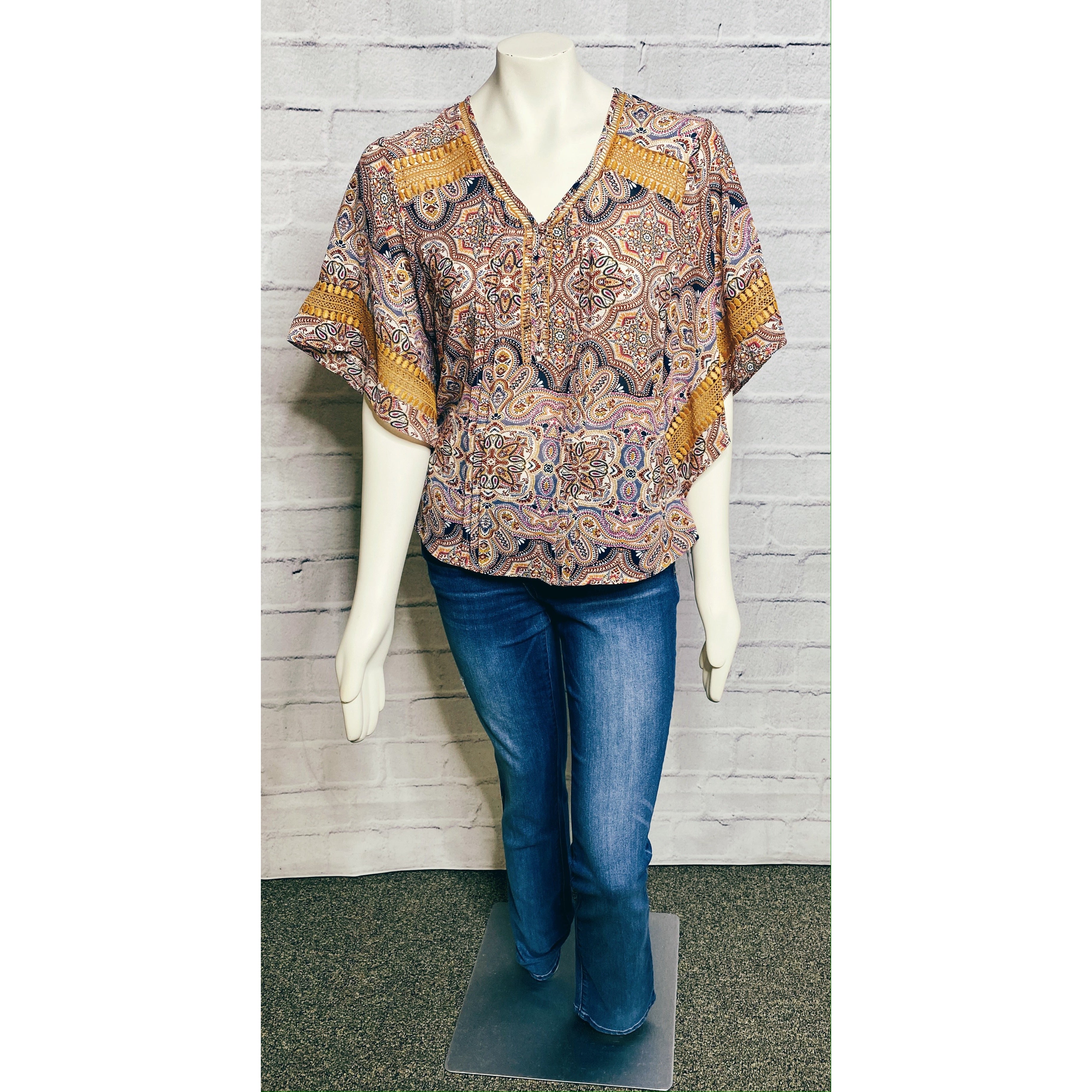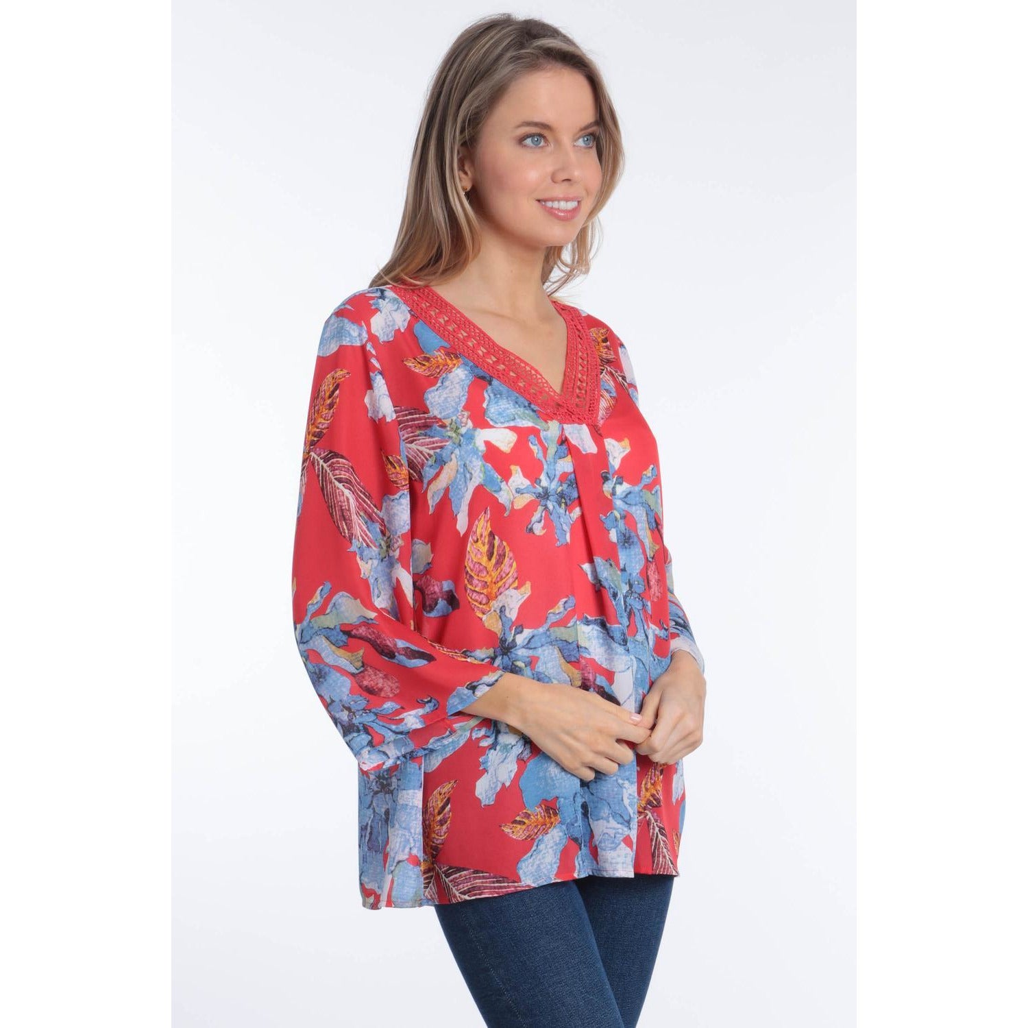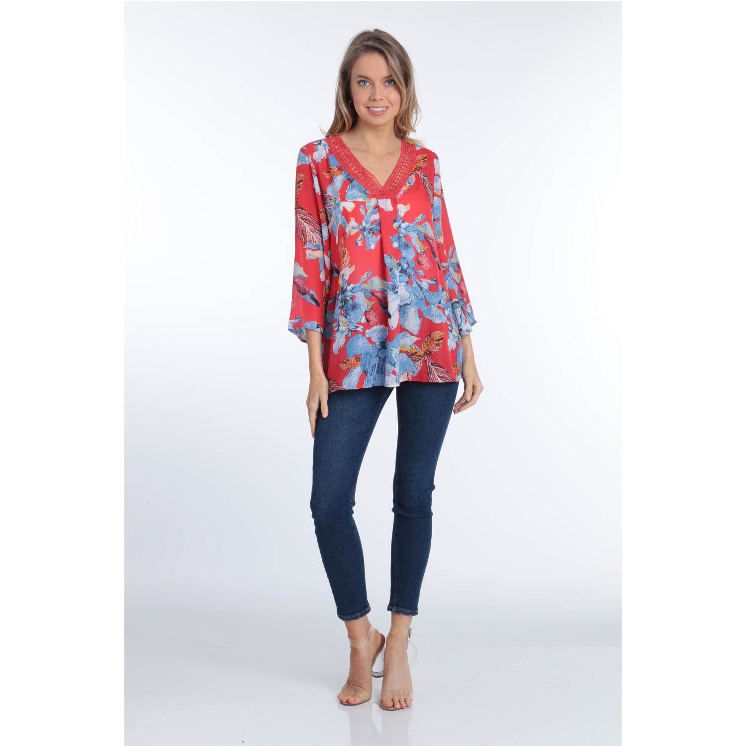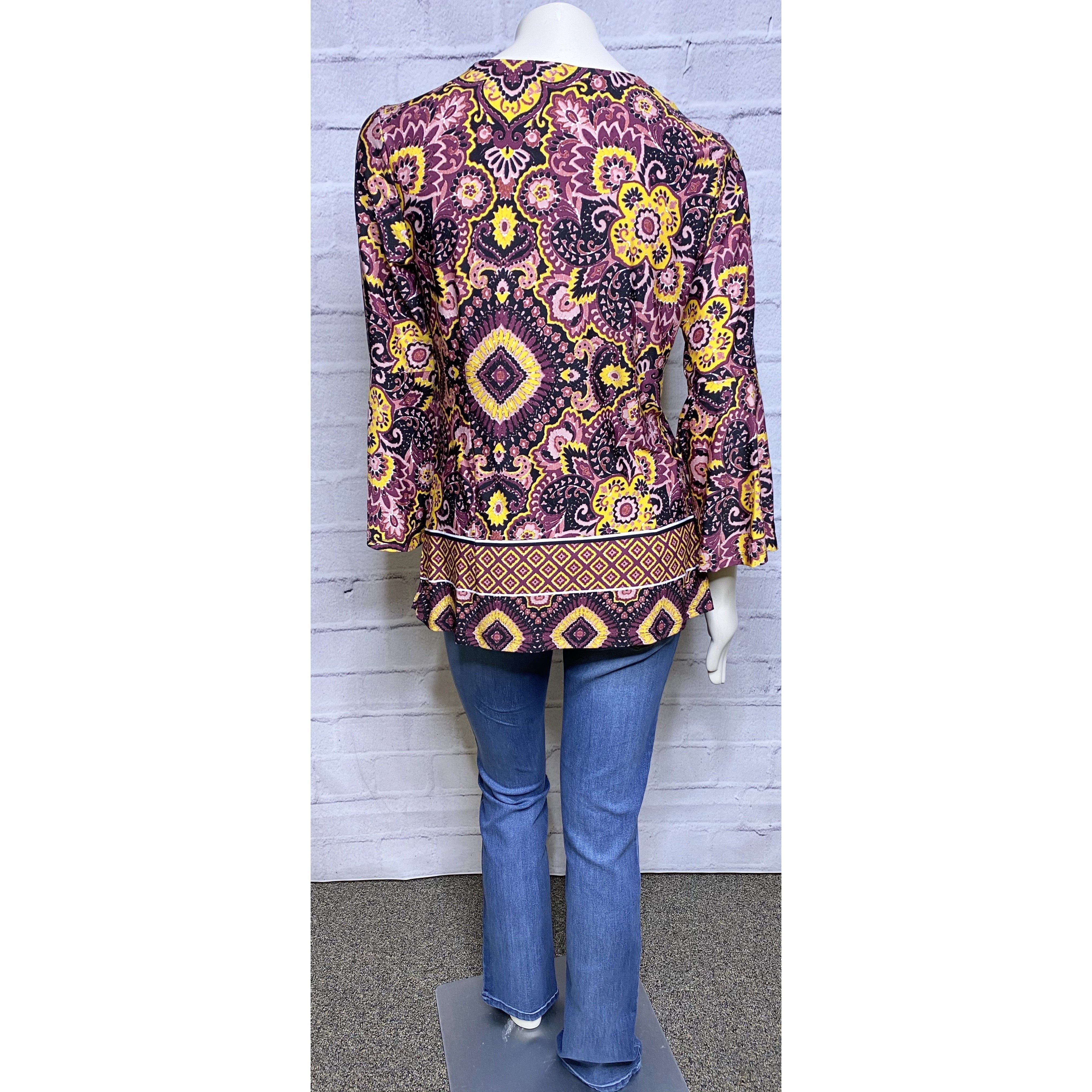 3/4 Sleeve Ruffle Front Snake Print Blouse