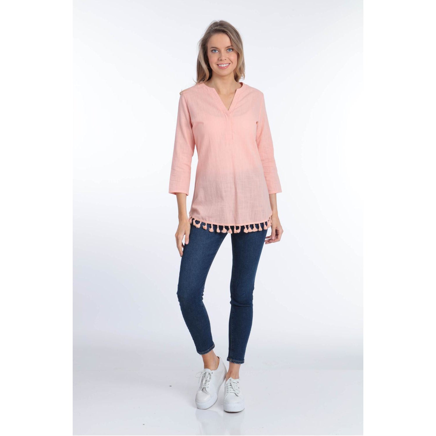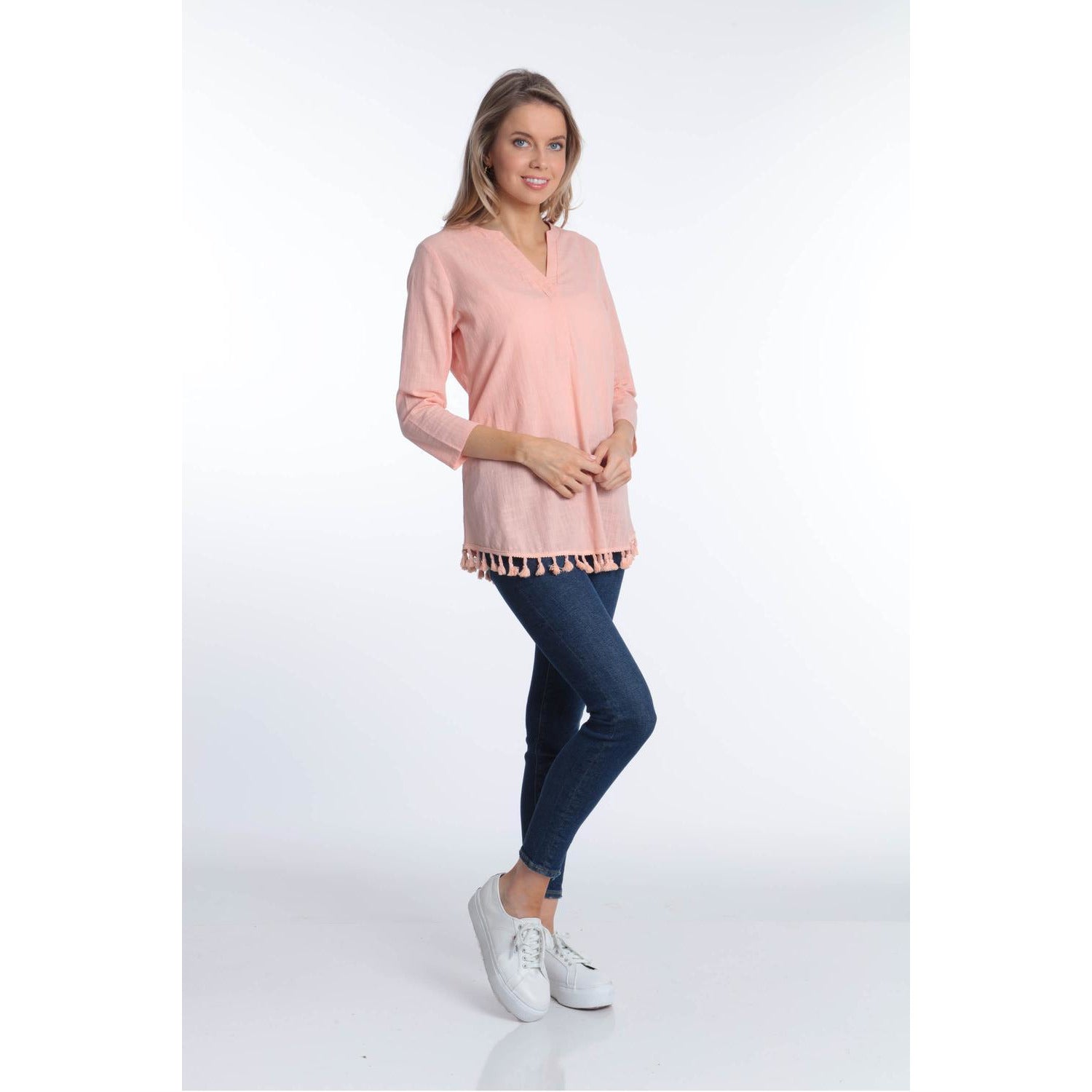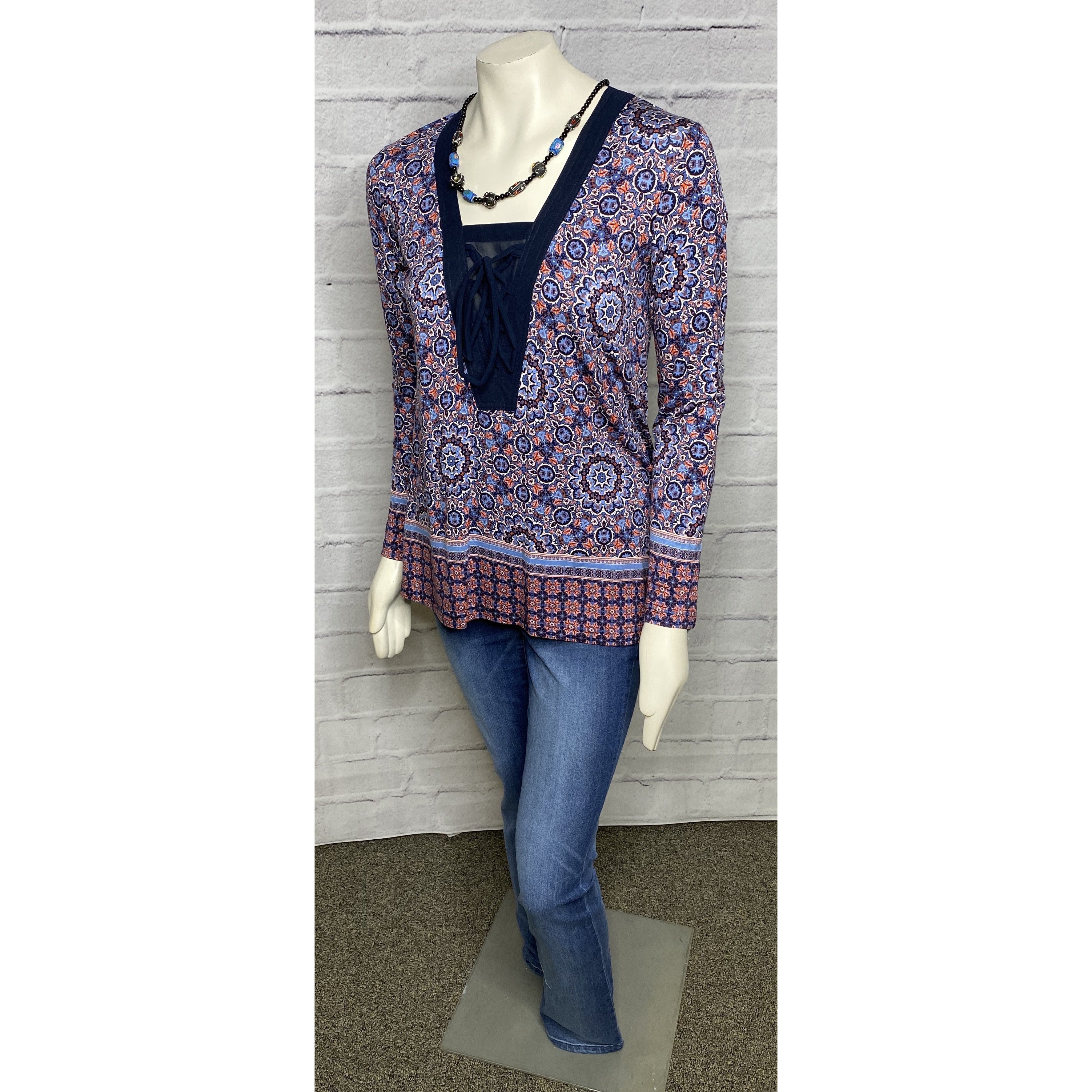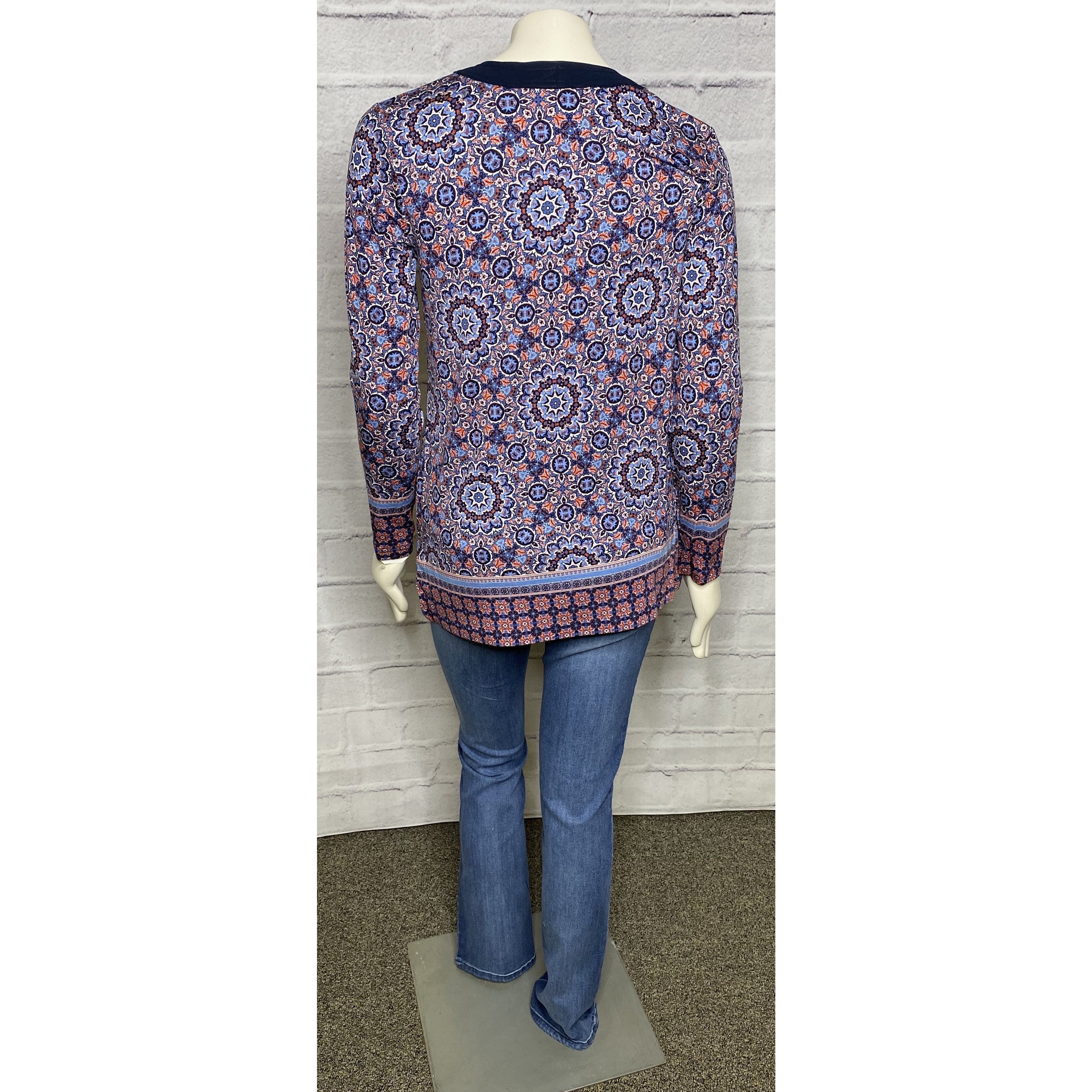 3/4 Sleeve Ruffle Front Snake Print Blouse